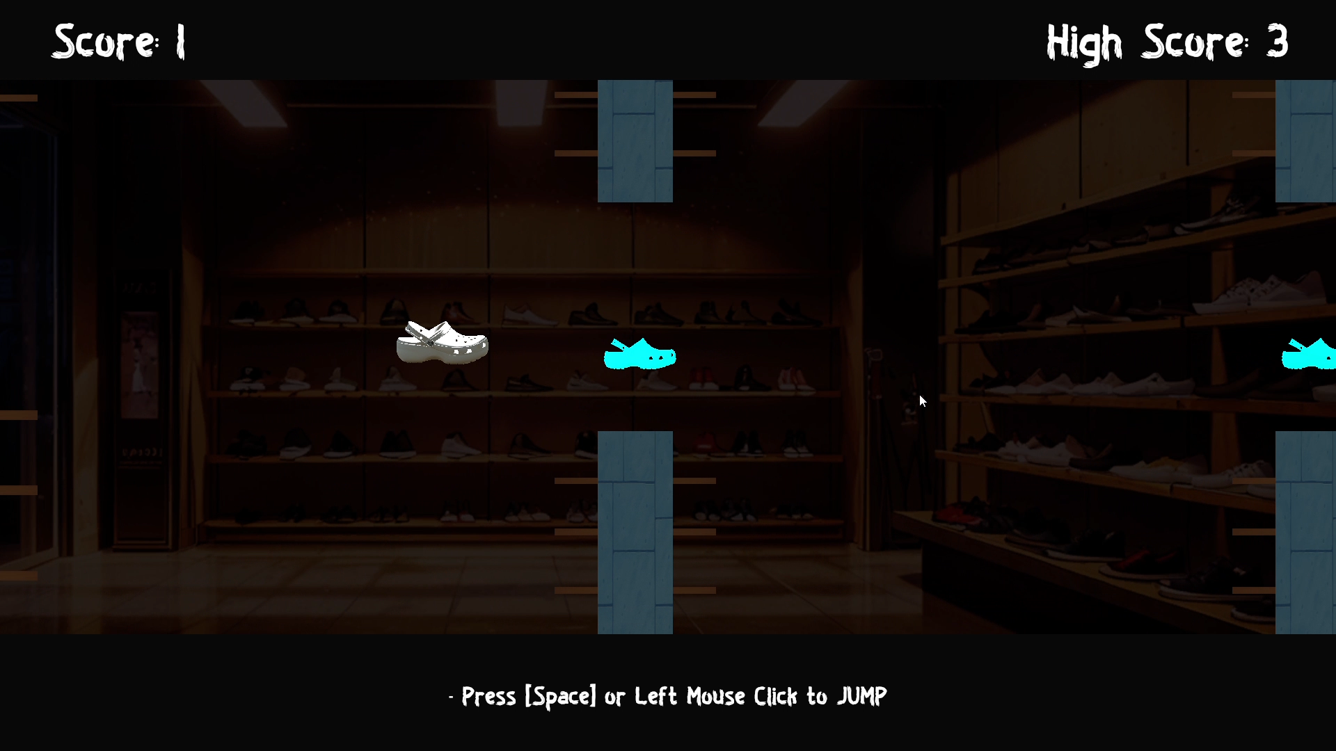 Floppy Crogs is a fast-paced, endless tapping game where you take control of a nimble crog trying to survive a shower of falling shoes! Jump, dodge, and stay in the air as long as you can without hitting the floor. Test your reflexes and aim for the highest score!